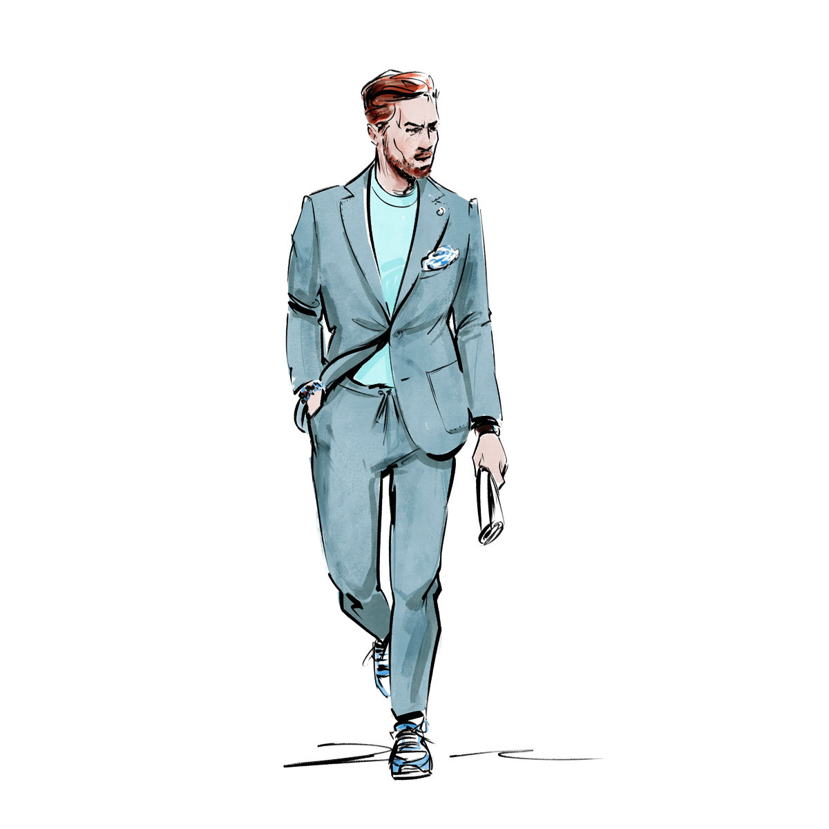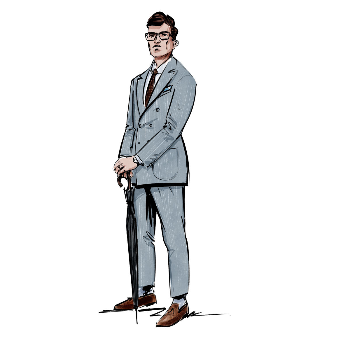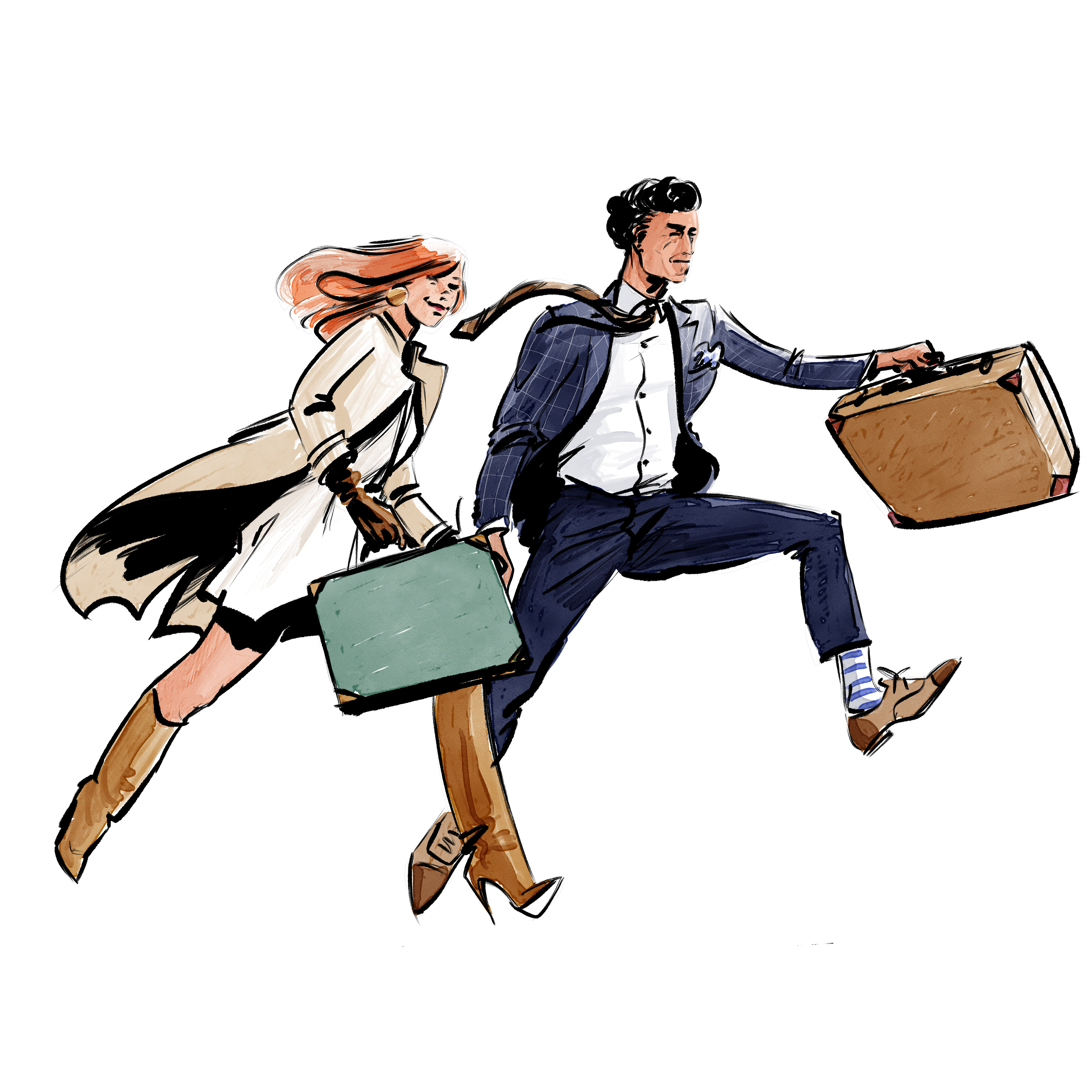 In 2022 Dutch Dandies looked back at the glory days of travel. I drew a mood image, featuring the TWA flight center, full of stylishly traveling gentlemen.