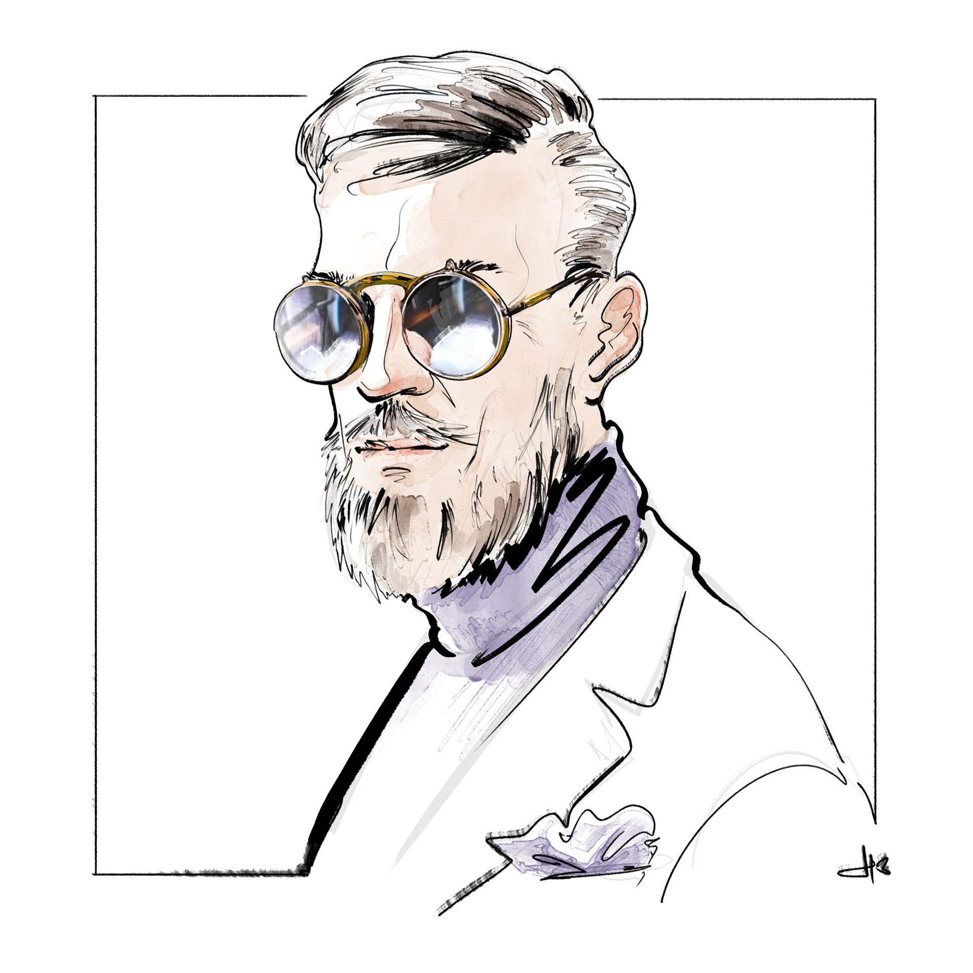 Fashion illustration of a man rocking a pair of steampunk shades.
