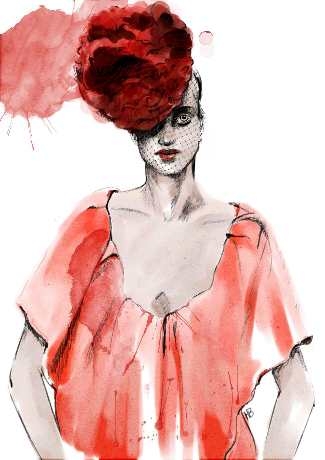 A series of fashion illustrations with the colour red as a theme. I named it Fashion gone rouge, a word play, because Rouge means red in French and it is an anagram of Rogue.