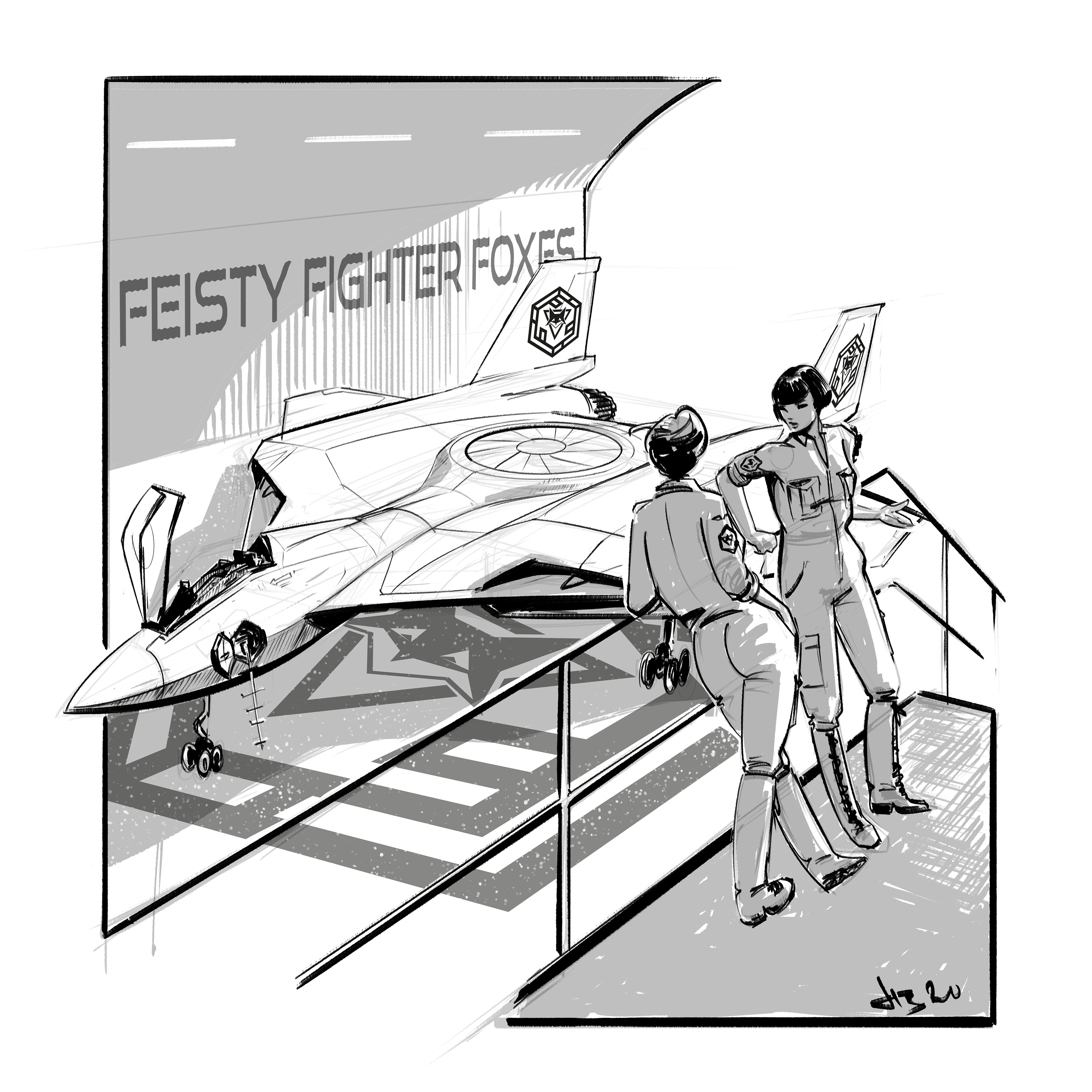 Feisty Fighter Foxes was another theme in my drawing battle with my friend Robert Kiss. I imagined an all female squadron of fighter pilots going by that name.