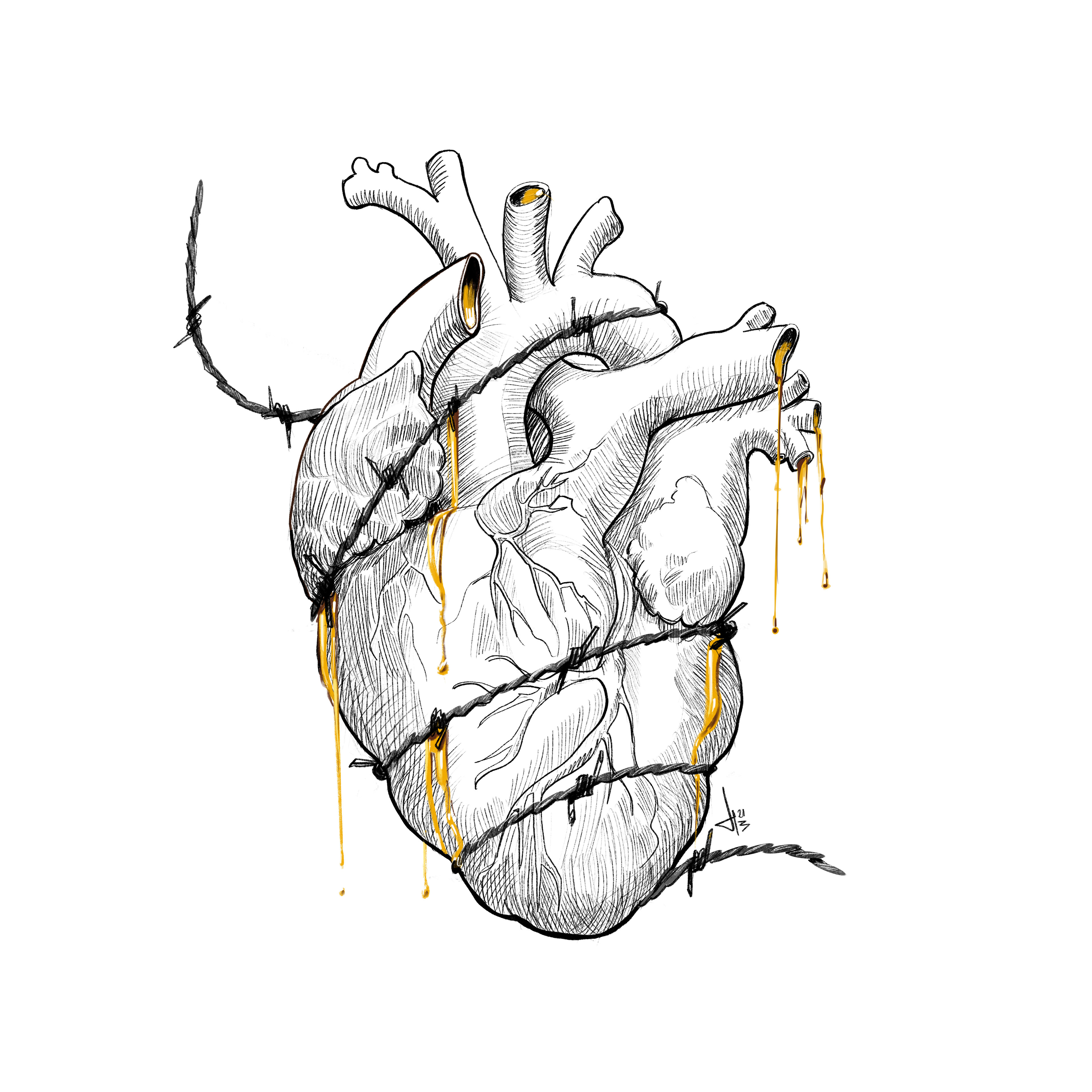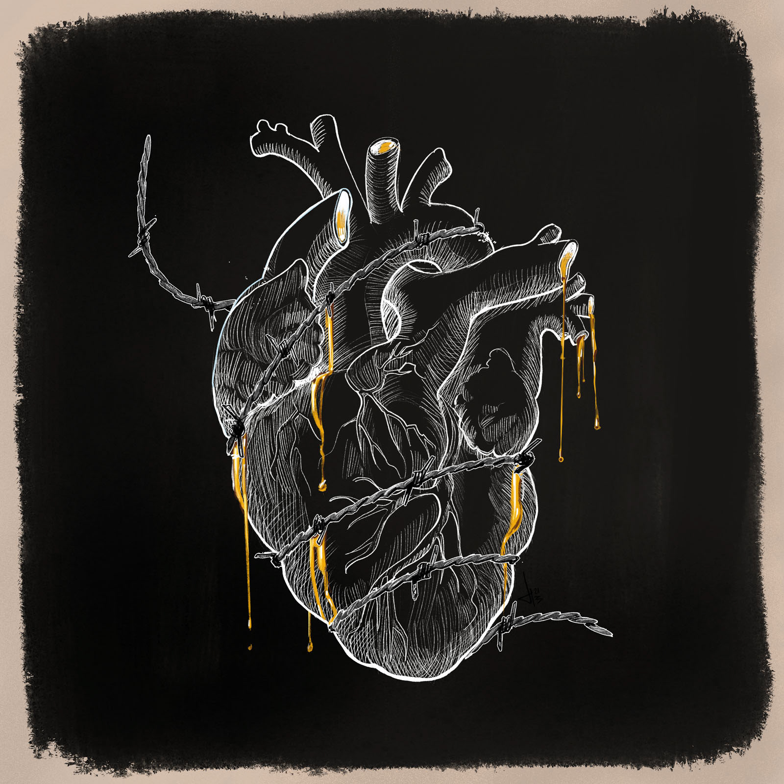 Guy Rooks new single 'Human Kind' offers the one antidote to pain and misery in human life: kindness. The artwork shows a human heart constricted by barb wire, bleeding drops of gold from several cuts.