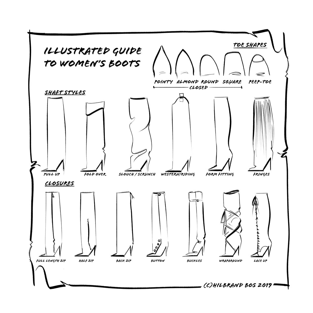 These boots are made for talking. So let's talk boot styles... This illustrated guide shows the different toe shapes, shaft styles and closure options...