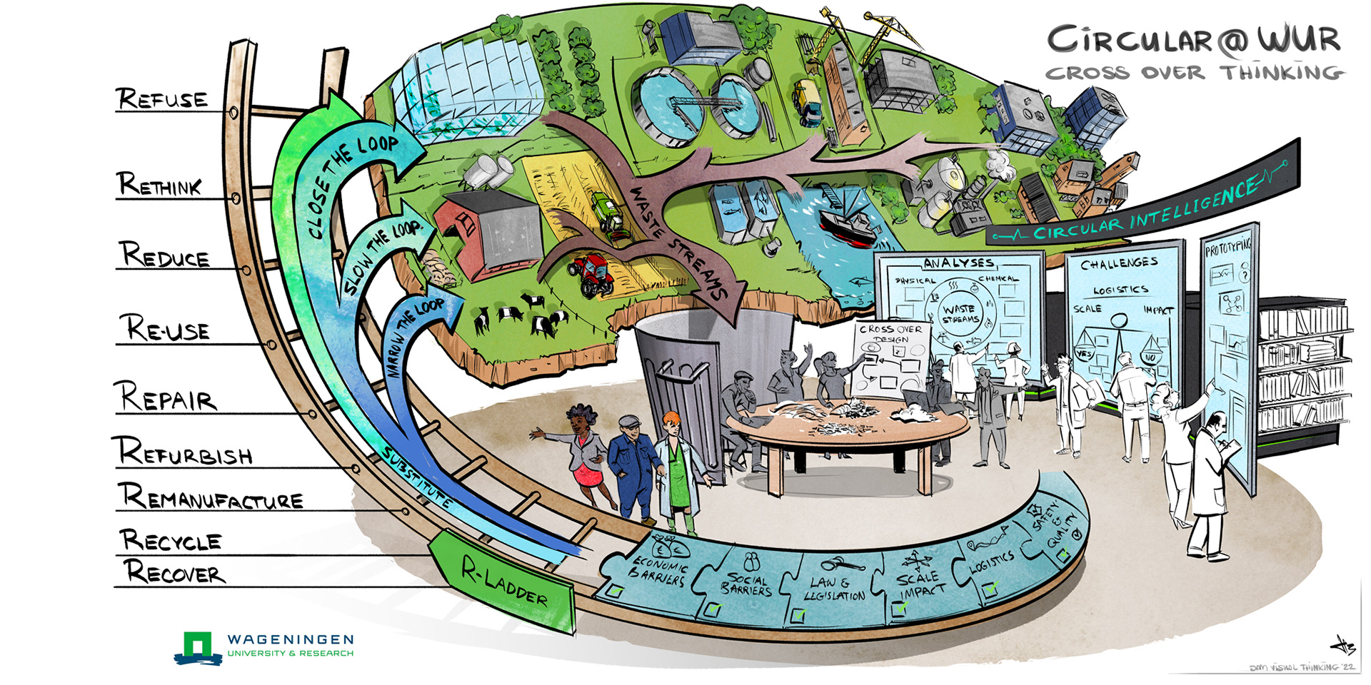 I was hired by Jam visual thinking to draw a informative sketch, providing insight in the research into ways of recycling at the Wageningen University.