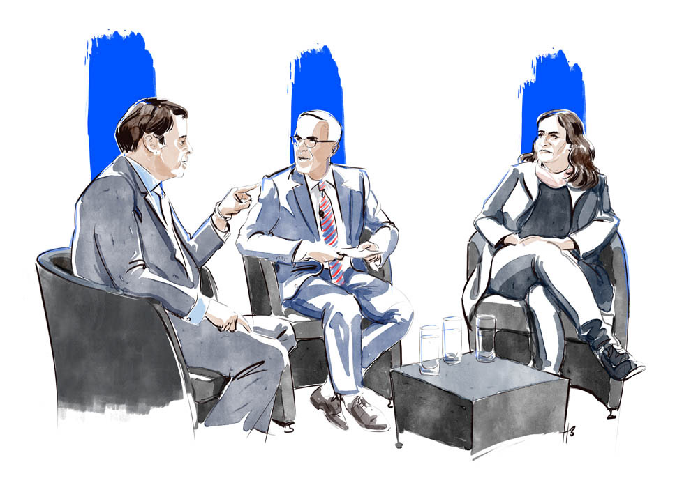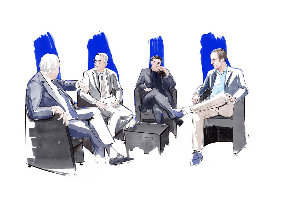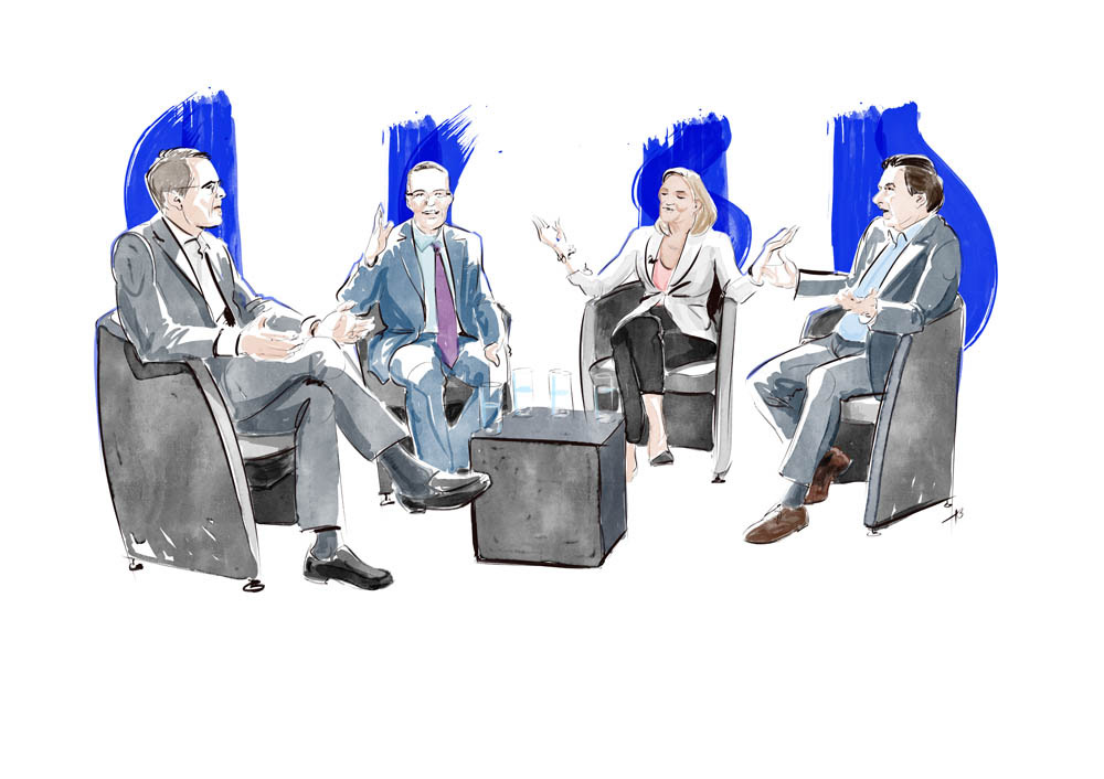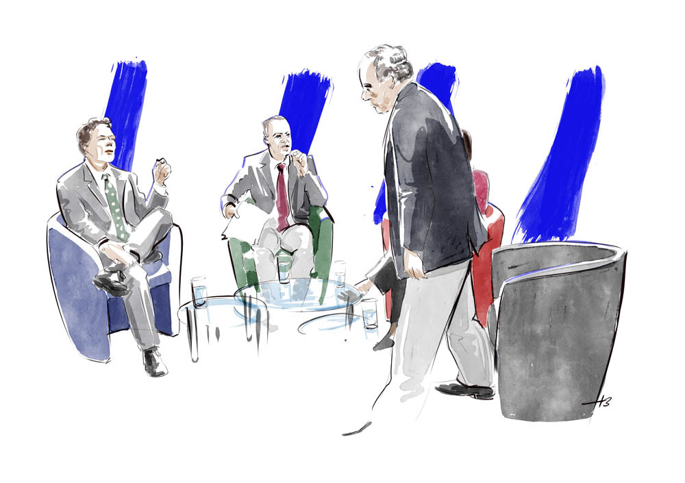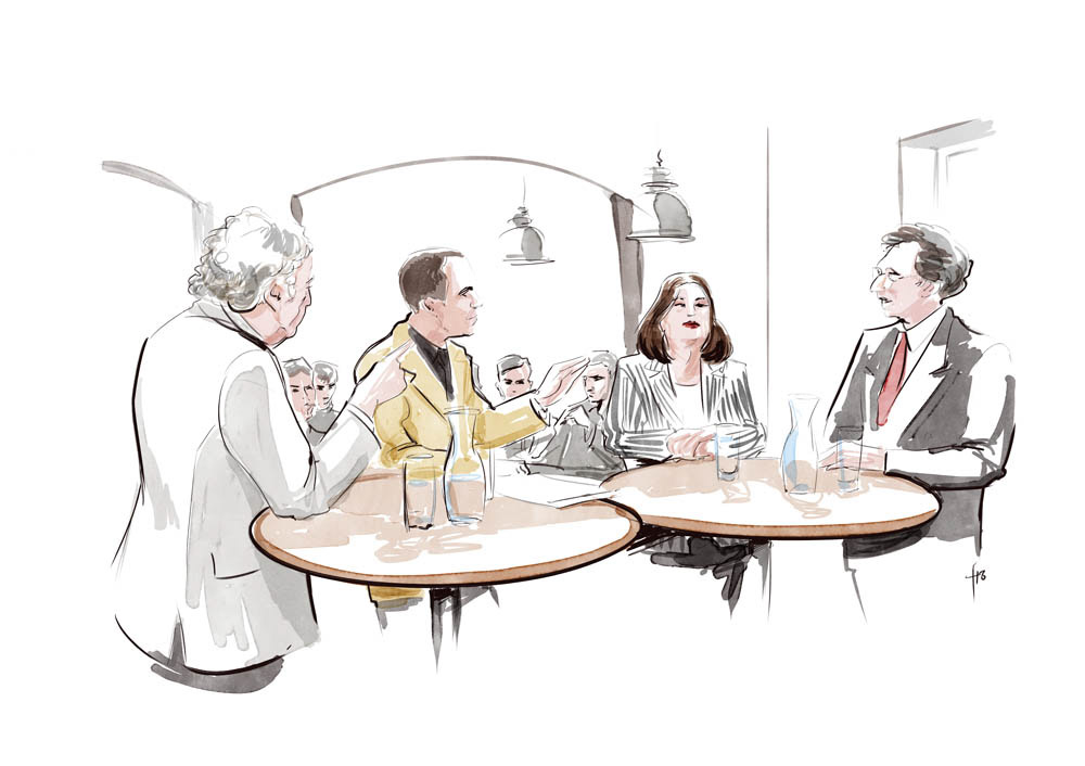 Here is a series of drawings that I made in commission for Eggert+Friends, Zurich, who needed a set of illustrations for the anniversary event of TeleZueri's political talkshow Sonntalk.