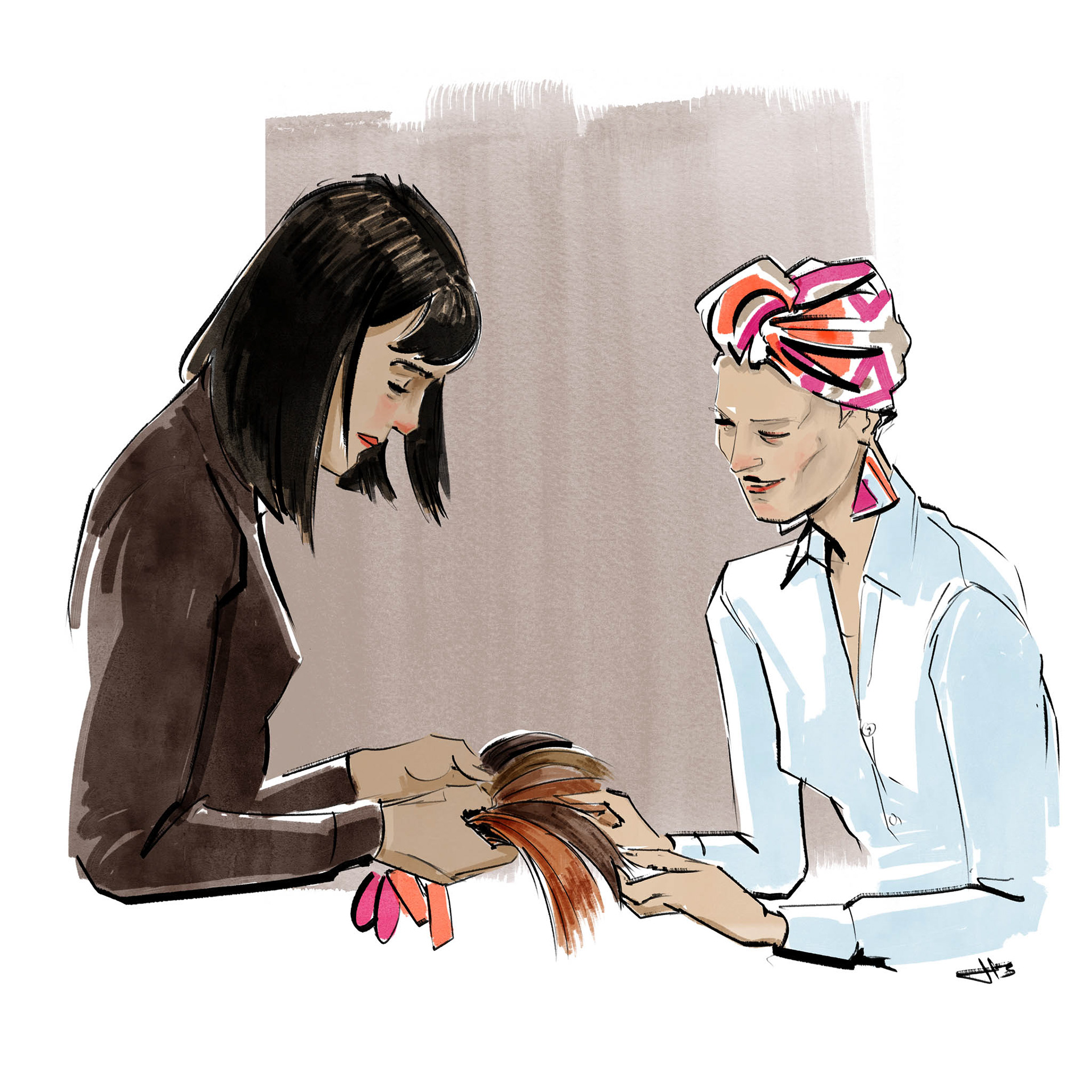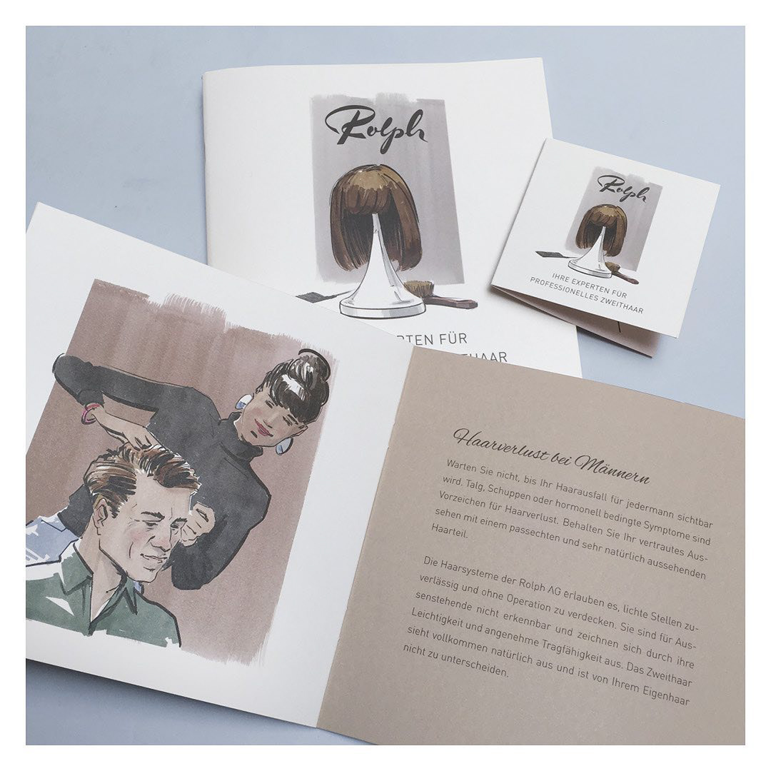 Series of illustration for Swiss Hair & Wig specialists Rolph AG. The illustrations are made for a brochure aimed at people who suffer from (natural) hairloss or hairloss due to disease such as Alopecia Areata or Chemo Therapy.