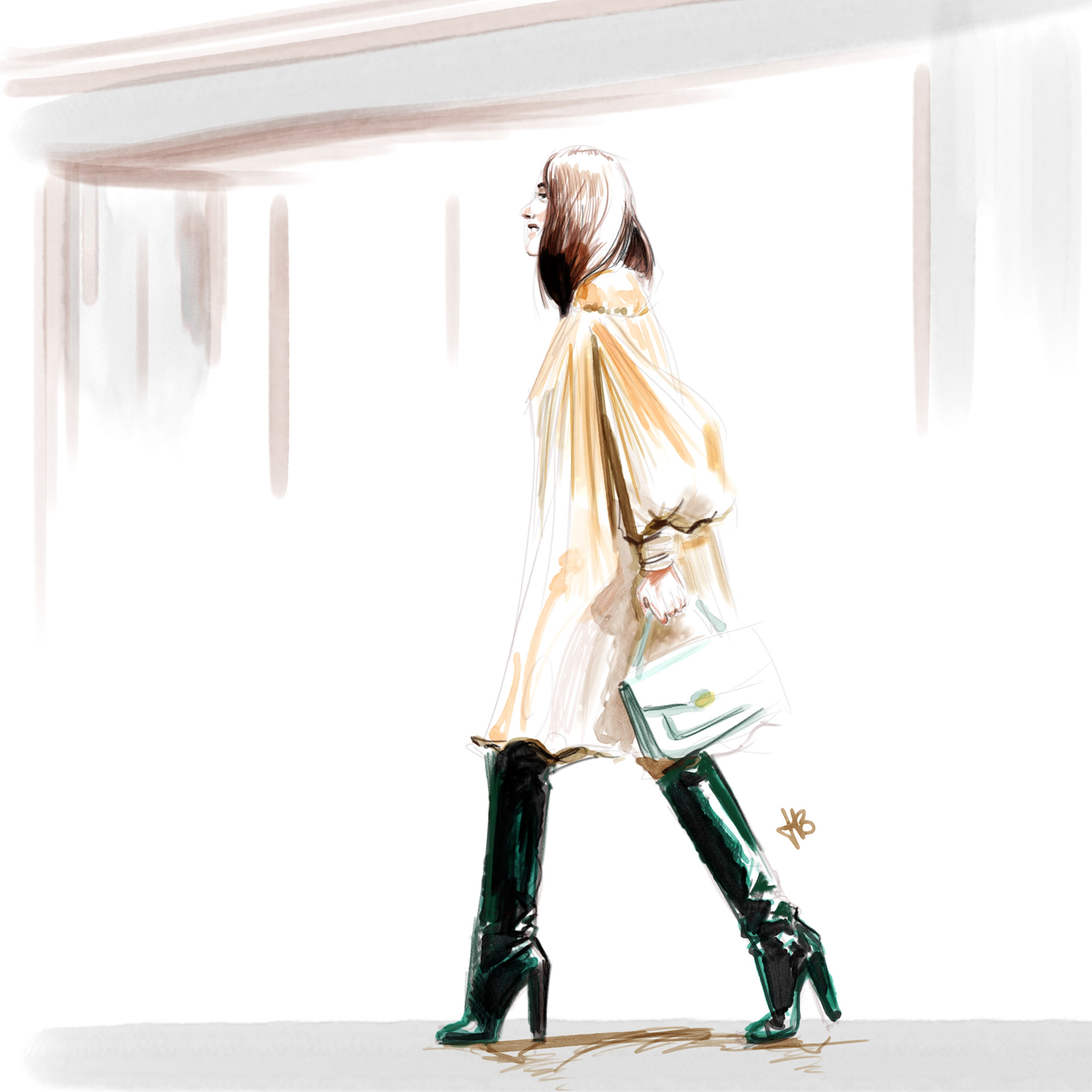 Street style fashion sketch.
