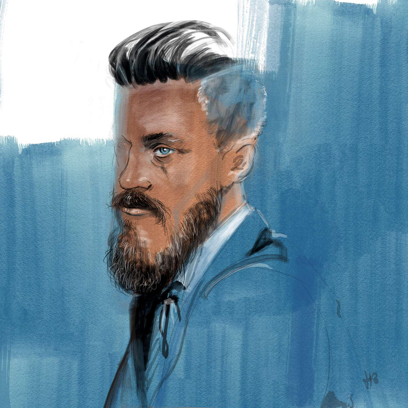 A fashion portrait of Travis Fimmel, who plays Ragnar Lothbrok in History's Vikings.